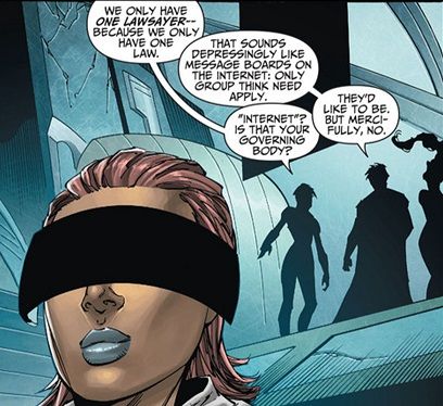 When Brainiac does explain how their judicial system works, Lobdell takes a potshot at guys like me on the Internet who hate his comic.