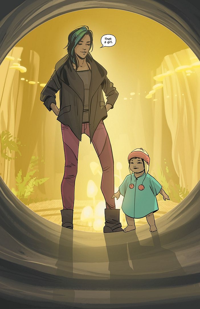 Can you see what I mean about it opening up the universe of Saga? I hadn’t even considered time jumps! But it’s so obvious now. They couldn’t just tell the story of Hazel as an infant. We know from the narration that Hazel lives a full life, so of course Vaughn and Staples are going to jump ahead in time so that we get to see some of it. Normally, time jumps like this can be weird to acclimate to, but I cannot wait to see what’s become of the family when Saga returns. Already Alana has a new haircut! That’s something! This sort of forward movement is only going to help the series.