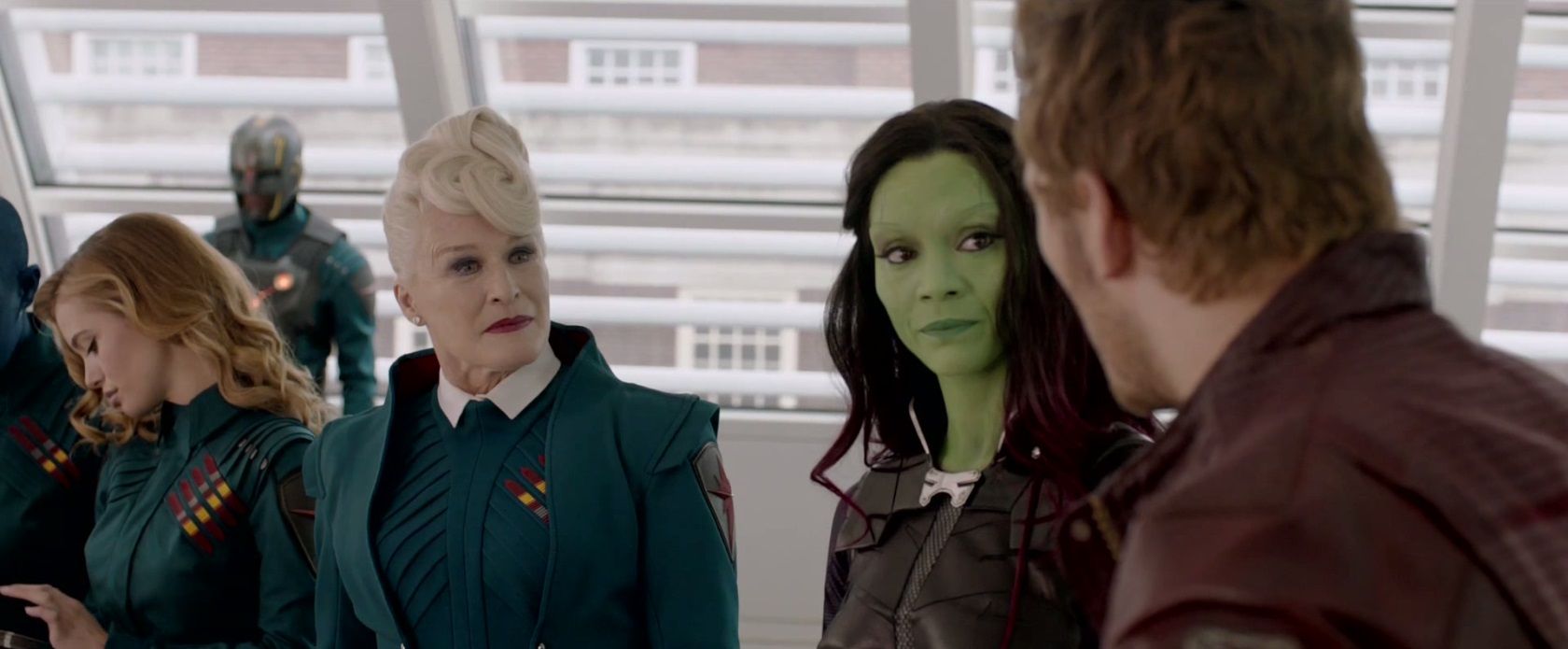 It’s offhandedly mentioned that Ronan is a Kree, and that the Kree have signed a peace treaty with the planet Xandar, and Ronan is mad about that. But who cares? The movie definitely doesn’t. Xandar is the home of the Nova Corps, and they are one of the biggest changes from the comics. The Nova Corps is no longer an intergalactic police force filled with all sorts of aliens. Now they are basically just the Xandarian military/police, and most of them look human. John C. Reilly gets a few good lines/jokes as one of the Nova officers, but Glenn Close is just there to cash a paycheck as Nova Prime.