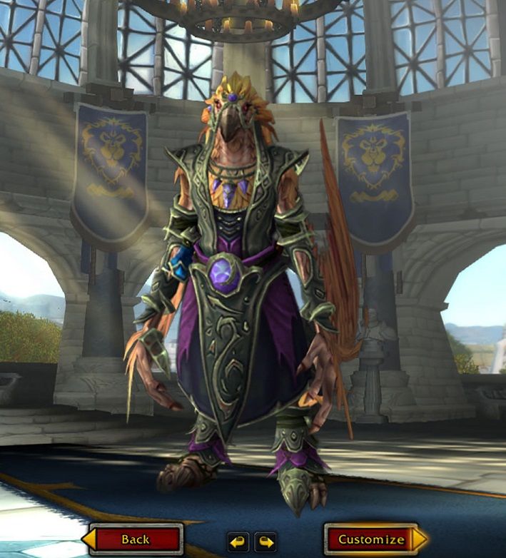 Introduced in the Burning Crusade expansion, arakkoa are bird-people native to the planet Draenor, the original home planet of the orcs and the draenei. They’re feathery fighters who squawk up a storm when you try to invade their property in Outland. But they also fit all the necessary requirements of a playable race: they wear clothing and armor, they have both warriors and spell-casters, they have unique architecture for their home cities, they are intelligent, and now they have both male and female models. Warlords of Draenor even introduced new models for the arakkoa. Almost as if Blizzard was preparing for something…