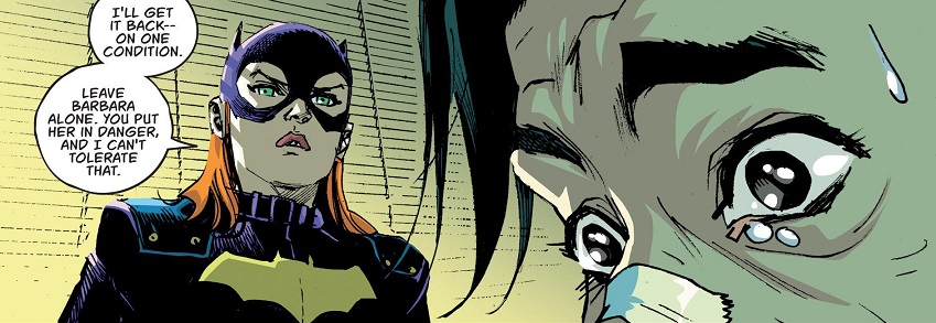 This issue was fine, regardless of the cultural impact of the setting. Batgirl fights some henchmen who are unique enough to be somewhat interesting. Larson makes good use of the supporting cast, keeping Frankie around, while giving Kai plenty to do — though Kai is a bloomin’ idiot if he hasn’t figured out that Barbara and Batgirl are the same person. He’s known Barbara Gordon since high school, and the exact moment he runs into her in Asia, a redheaded superhero who is normally only seen in Babs’ hometown is also suddenly in Asia too. What a dingus.