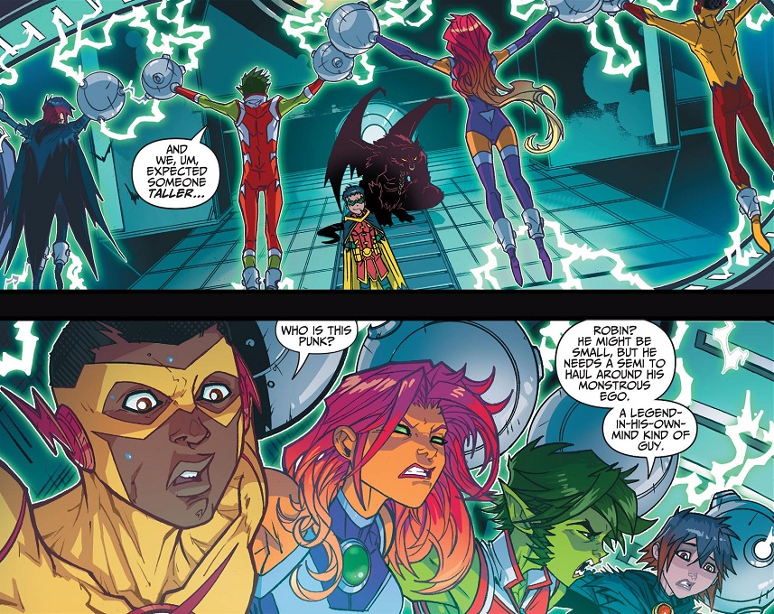 First of all, it is a damn shame that artist Jonboy Meyers has already left this comic. His art is pretty fantastic, with a really energetic style that befits the Teen Titans as a youthful team with a lot of varied powers. This issue is a fine showcase of his abilities, and hopefully Teen Titans can move on with someone just as good.