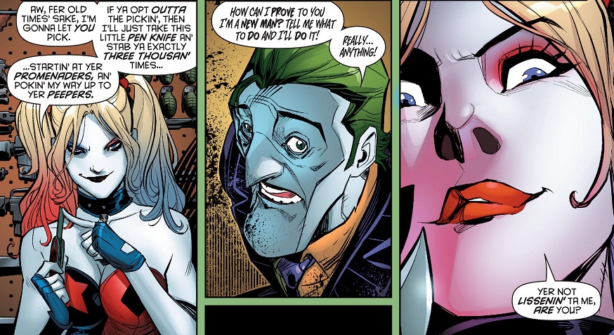 Rather than really sink their teeth into another emotional showdown between the Joker and Harley Quinn, this entire issue is just people beating on the Joker for cheap gags without any repercussions. I was hoping for more — and could still get it — but for now this was a filler issue in a storyline that deserves the best this creative team can weave.