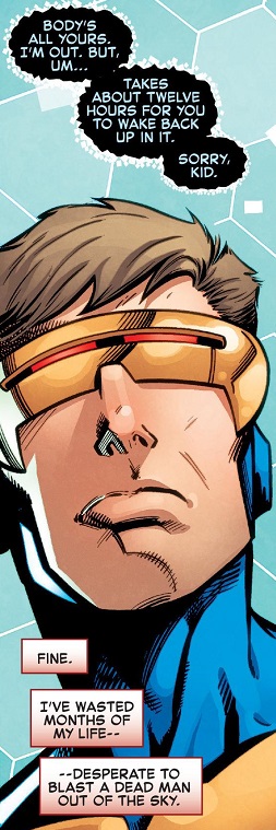 All great points, Sean. But Mosaic used Scott’s body to fly the Blackbird, so apparently he hadn’t left it just yet? And if Scott really will be out for twelve hours, maybe that just started? It’s weird.