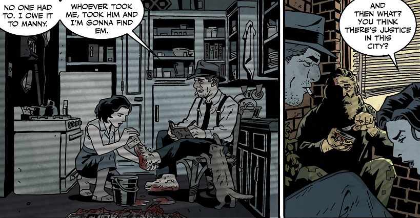 Then there’s the double page spread that turns into a spiral as Arnold loses track of time and all of his actions blur together. The stylish elements work in The Dregs and add to the already gripping story. Arnold is a cool guy, for a dirty, filthy homeless dude, and his investigation make for a solid story. Arnold is an easy guy to root for, and his world has already been populated with interesting people, places and things.