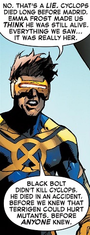 An “accident”? Cyclops died in an “accident” before they even knew the Terrigen was poisonous?