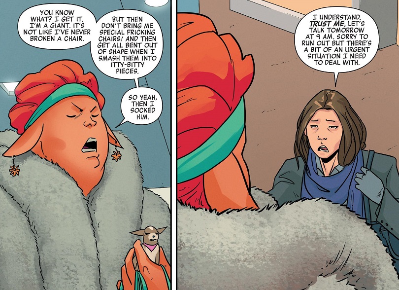 1. Hulk was really good. The entire section of Jen in Maise’s building was comedic gold. So hilarious. And then there’s feels, and then there’s creepy. Leon and Milla are killing it on the art.