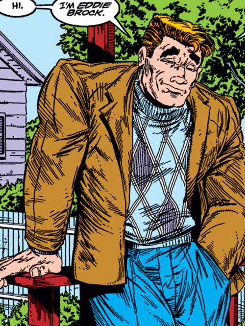 But if you’re going to do that, then go with the Ultimate Eddie Brock origin. It’s much better. In the regular 616 comics, Eddie Brock is an asshole newspaper reporter who gets embarrassed by Spider-Man and swears revenge because of a newspaper story. But in Ultimate Spider-Man comics, Eddie Brock is a childhood friend of Peter Parker because their fathers worked together. Peter has since forgotten about Eddie, but when he stumbles upon some old family photos, Aunt May tells him all about the kid. Peter finds Eddie in college and they try to re-establish their friendship, only for Eddie to be something of a jerk.