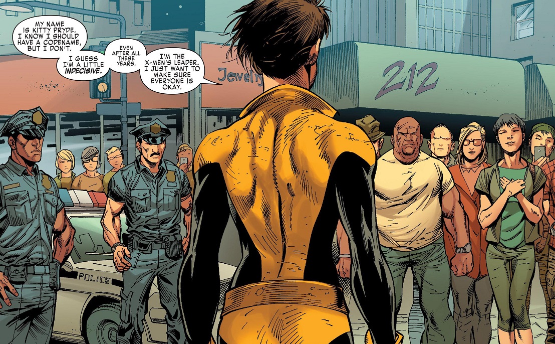That seems fine. Even though Kitty Pryde is known for having a lot of different codenames, she’s mostly just been going by her real name for awhile. I don’t know why she doesn’t just go back to Shadowcat, since it’s an awesome codename, but whatever, I’m not her. She’s gotta do her.