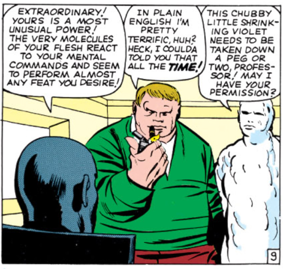 And Blob fits that criteria. In fact, in his fist appearance all the way back in Uncanny X-Men #3 in the 1960s, the X-Men met the Blob while trying to recruit him to the team. It just so happened that the Blob was too much of an asshole to get along with anybody else, and the X-Men gave him the boot. So instead, Blob hooked up with Magneto and his Brotherhood of Evil Mutants.