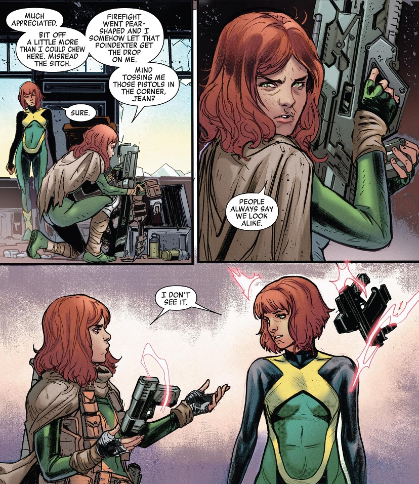 I think I agree that a Phoenix arc is a little too obvious for a Jean Grey comic, but part of me is kind of hoping that Hopeless is setting us up for an ‘It’s all in Jean’s head’ twist at the end.