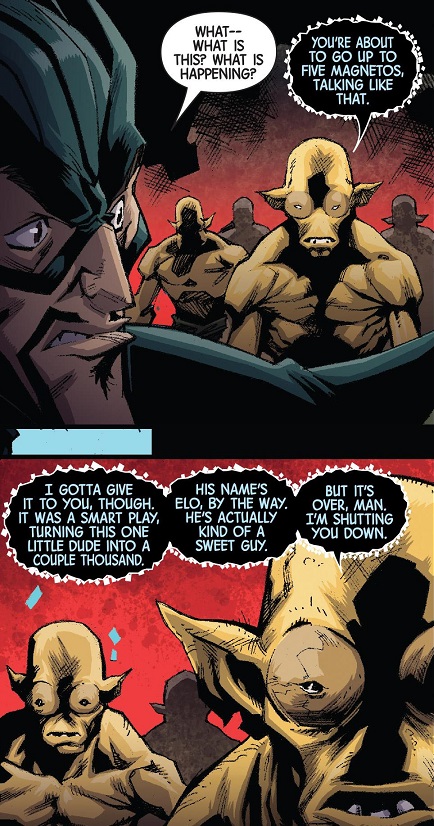 Then a bunch of other Ultimate X-Men show up at the bar claiming they’ve come to take Jimmy back. Also, I think they’re called the new Marauders.