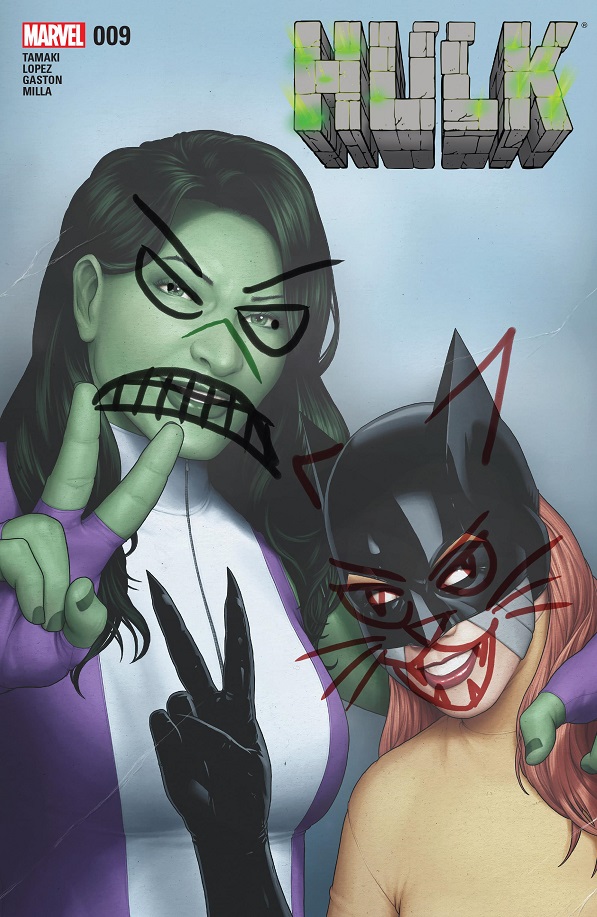 This issue did a couple things better than the previous issues. It starts tying Oliver’s monstrous situations with Jen’s own, which is a step up from being a simple superhero story. But I still feel like Tamaki abandoned the PTSD aspect of Jen’s Hulk persona too quickly. And when she Hulks out in this issue, it’s made to be a pretty big deal — and has fantastic art! — but all she does is yell at a couple of ordinary humans. She can’t fight them or really use her Hulkness in any way against them, other than smashing the stuff in the room, which isn’t even their room. And one of them isn’t even really that scared. So Jen kind of wasted being the Hulk, in a series where turning into the Hulk is supposed to be a big, scary, soul-scarring deal. Honestly, she would have accomplished more if she’d called the police on the guys and had them arrested, using her lawyer connections to really throw the book at them. Now that would be scary!
