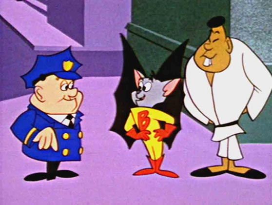 Batfink was the star of a metric ton of short, 6-minute cartoons in the mid ’60s created to parody the Batman and Green Hornet television shows that were popular at the time. Kind of like DangerMouse! Batfink was a superhero bat with metallic wings and a sonic scream, who was born in a plutonium mine and lost his natural wings saving his mother’s life from some bad guys — prompting him to go into crime-fighting! Batfink had his own police contact, his own mischievous villains and his own themed car — the Battillac! He also had an oafish sidekick named Karate — seen above — who probably wouldn’t play all that well today.