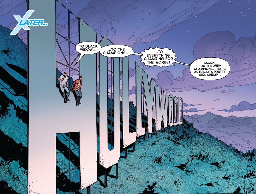 Funny happenstance. So there I was reading my regular comics this week, and something kind of hilarious popped up. Apparently, this was the week for Marvel superheroes to hang out on the big letter ‘H’ in the Hollywood sign!