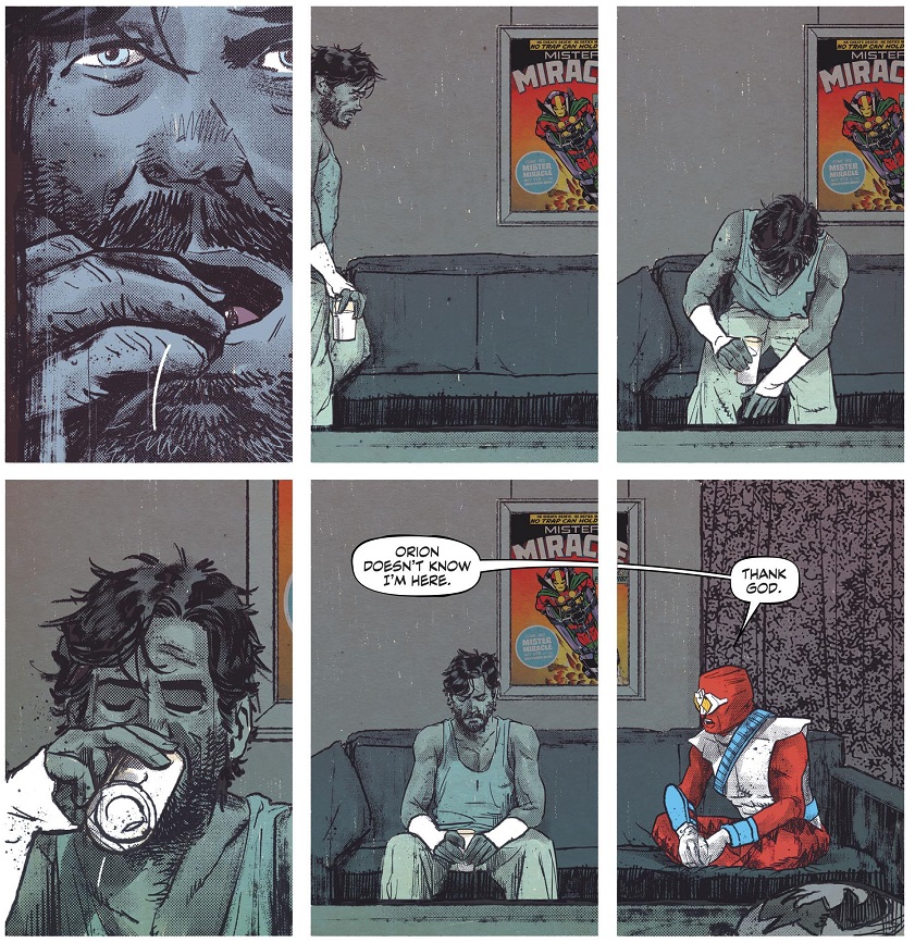 Yeah, uh, I can’t really describe the meta stuff in this issue if you’re not reading it. But King and Gerads are messing with old narration from the original Mister Miracle comic, and they’re playing around with panels as if they’re adjusting the knobs on the side of an old TV set. It’s weird. And considering the heart of the story is whether or not any of this is real or if Scott is somehow being effected by the Anti-Life Equation, who knows if any of this is happening? It’s that weird, edgy sort of nearly insanity that seems right up Tom King’s alley. I’m pretty sure we’re supposed to be unsure about everything in this comic, and that’s definitely working.