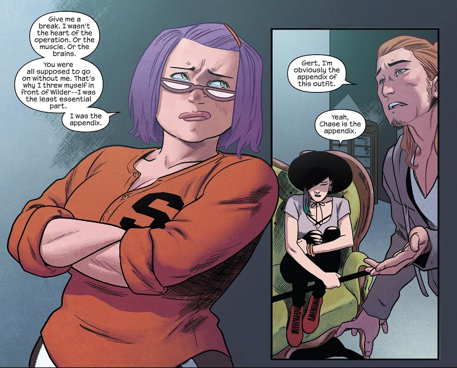 I don’t remember the original Runaways enough to know whether or not Rowell has got Gert’s voice down, but that doesn’t matter. She nails Gert regardless!