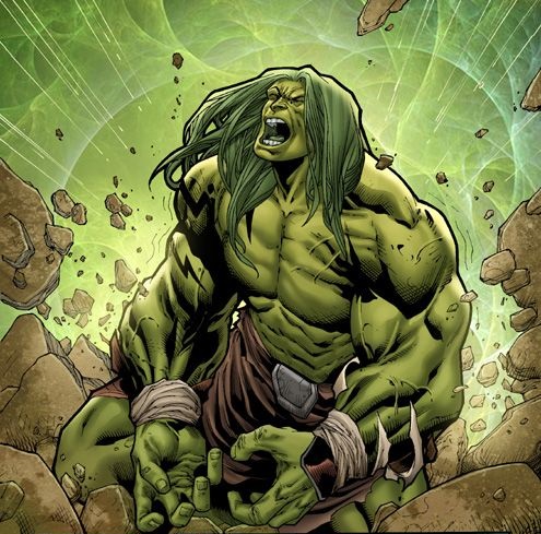 Did you know that the Hulk had a kid? He’s got several, I think, but we’ve only interested in Skaar. He’s the son of the Hulk and Caiera the Oldstrong, Hulk’s lover from his Planet Hulk adventure. We all thought both she and her home planet were destroyed, but Marvel decided that she had a kid that survived the destruction in a cocoon. Then they decided that the cocoon aged him into a teenager within a single year, because who wants tow air for a kid like that to age naturally in the world of comics? He needs to get to smashing right away! Skaar is this tough-as-nails crazy warrior guy who comes to Earth and causes all sorts of trouble for the Hulk. And since he’s powered by the Oldstrong lineage, he’s got the Old Power, which gives him control of the Earth and lava and I think tectonic plates. Just to make him a bigger deal.
