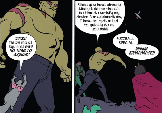 Madness. This issue is madness. It’s the silliest of Squirrel Girl comics, in the best way possible! It’s like the creative team just went for broke, throwing out one silly idea after another. And on top of that, they delivered some of the best jokes they have in ages! And I say that fully meaning that all of their jokes are great, but these were beyond superb!
