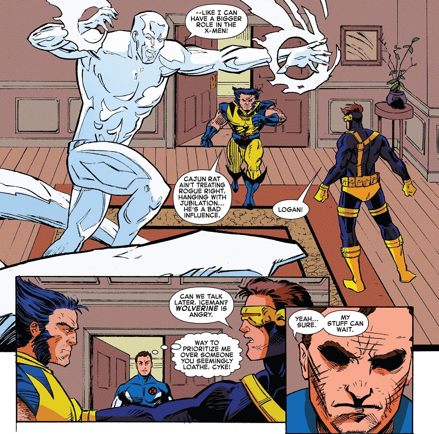 Also, the issue is intercut with various flashbacks to Bobby’s youth and time with the X-Men, to moments when his thoughts about being a mutant and being gay got shuffled into the background by other people.
