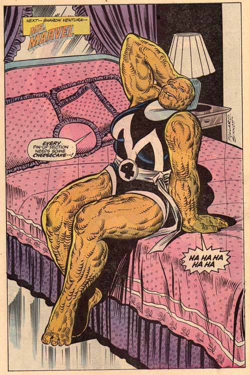There’s a She-Hulk, right? So why not a She-Thing? And how about we get really weird with it? Sharon Ventura teamed up with the Thing in the Unlimited Class Wrestling Federation and was given powers by the Power Broker and Dr. Karl Malus (the villain from the second season of Jessica Jones, who I’m just now learning is an actual villain from the comics! Neat!). Sharon was given enhanced strength and the sorts of powers that would be good for pro wrestling, and she went by the name ‘Ms. Marvel’. That’s a pretty solid super-powers origin, but you may be wondering, how did she become the She-Thing? Simple! She joined the Fantastic Four and got exposed to cosmic rays, like you do! That turned her into a lady version of the Thing and she slowly faded into comic book obscurity. I think she was cured at one point.