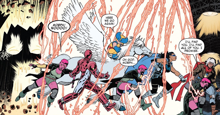 Though to add another wrinkle to this comic, Morph shows up for a single page. Apparently the old Exiles are still together, but they got split up and were supposed to come to this world as a rallying point. Blink is happy to see him…until he gets eaten up like everybody else.
