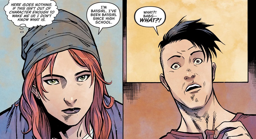 Larson has really been pushing the idea that Barbara Gordon feels unfulfilled in her life, but the thought bubbles rarely reflect the actual actions in the comic.