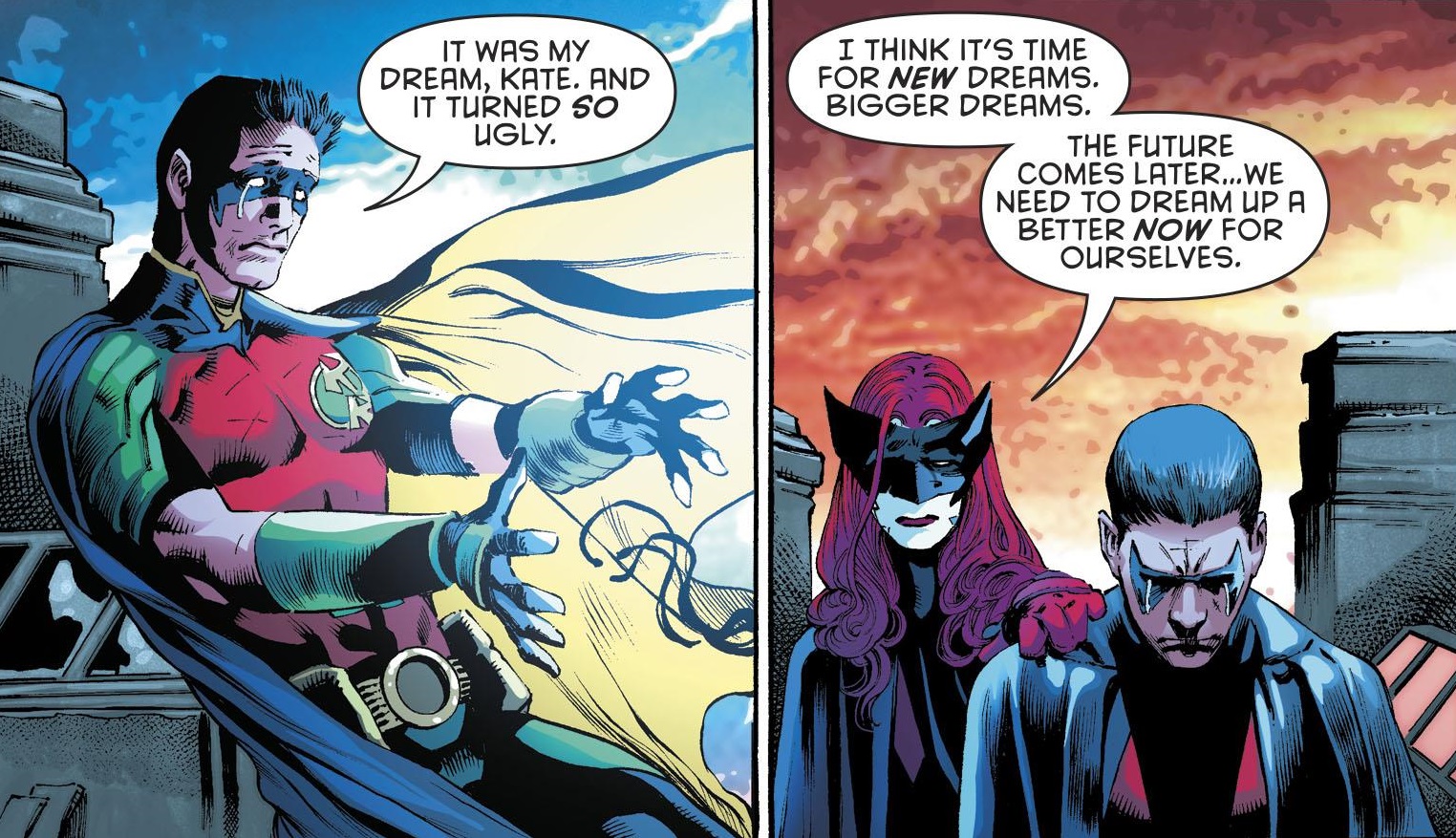But now is not a moment to worry about Tim’s future. Now is a time to celebrate Tynion’s kickass comic. The finale is pretty darn awesome, with the good guys triumphing against the General through sheer force of will and goodness. We get a lot of nice character moments, like Batwoman comforting Tim once the dust has settled, and then all of the mini epilogues that see characters off to their upcoming futures.