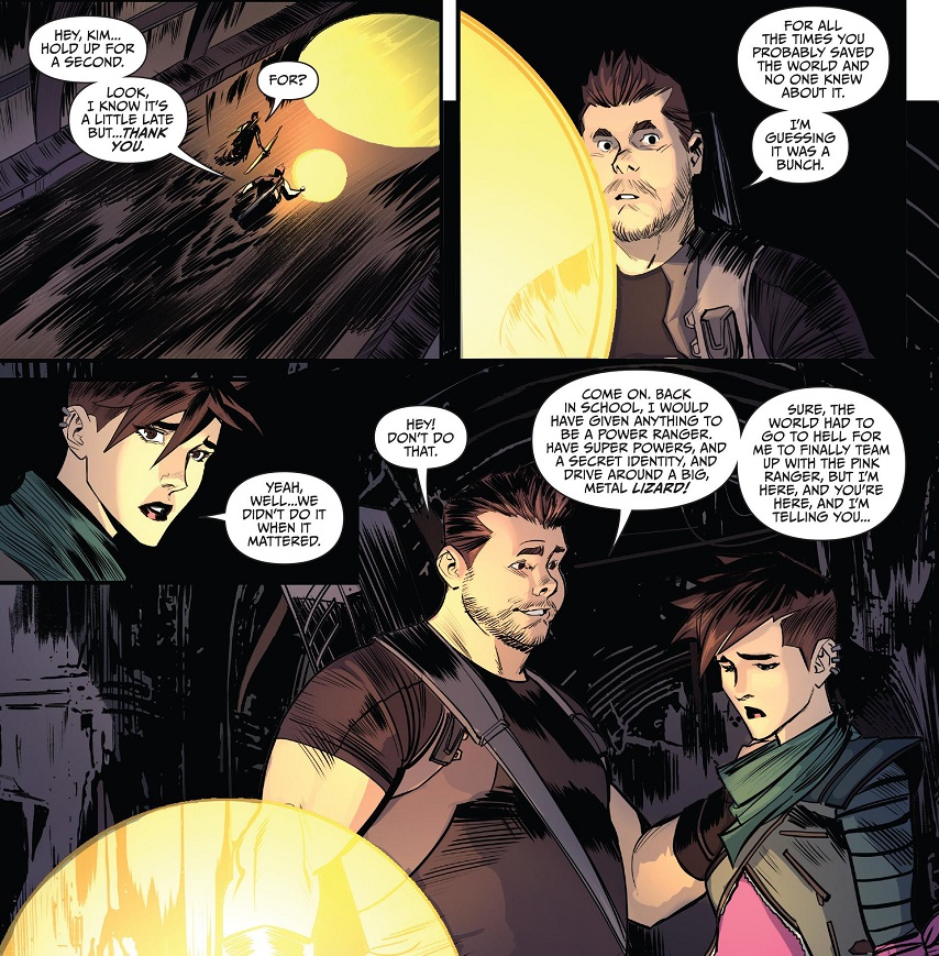 Thankfully, this issue avoids dwelling on Drakkon so that we can get some proper tie-in side stories. Alternate reality Pink Ranger fighting her old self and friends is a really fun subplot to the whole event, and it flows in this issue. You’ve got Evil Kim being all manner of clever and badass. You’ve got Rita planning something sinister of her own. And this issue has more of those great character moments that I love — and that I think are missing from the main title. I don’t know where Go Go Power Rangers is going with all the plates its spinning, but this is about as exciting as a plate-spinning comic can get!