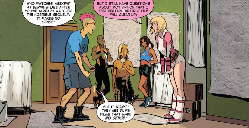 Meanwhile, Gwenpool and Quentin do that whole thing where they hate each other, start screaming at each other and then start making out, much to everyone else’s disgust.