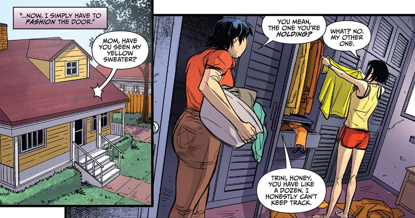 I just can’t get over the fact that this comic, while artistically gorgeous, doesn’t have much in the way of story. Apparently, a lot of the flashback scenes in this issue are direct references to past Catwoman/Maggie moments, which is neat. But this issue really only serves as a primer on Catwoman and her sister. I’ll grant you, I probably needed a primer on their relationship, but it comes at a weird point in the story. This thing with the Creels is so oddly half-baked already, and now we get an entire issue without those villains. Like, why doesn’t Catwoman just move her sister to a different city for her rehabilitation? She’s apparently in such a catatonic state that she doesn’t move or speak. Not to be too cruel to people in such situations, but couldn’t she sit in a wheelchair in a different hospital? One not located in a city controlled by evil criminals who want to kill Catwoman and her sister just for being in the city?