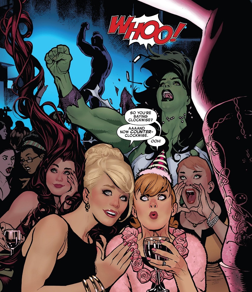 FF was good. Fun and sweet. For the record, the strip club’s not Greg Land. I can recognize Land’s artwork from a mile away, and that ain’t Land. It’s way too good to be his work. None of the women have Land-faces.