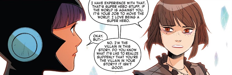 Wasp is phenomenal. Really powerful story. As for continuing tension with the girls, yeah, Whitley’s said next issue’s going to go a lot into it. Taina, especially, is piiiiiissed at Nadia for the “fix her” thing.