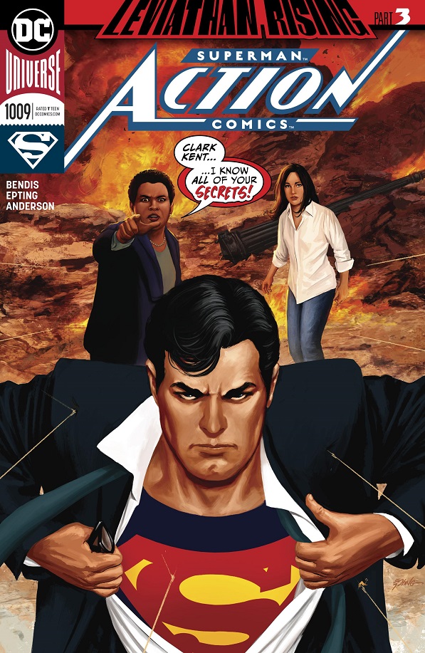 Superman and Lois have taken Amanda Waller and Jimmy Olsen to the new Fortress of Solitude to try and figure out what’s going on. Waller can’t help but keep needling Lois, but she does explain that she thinks Leviathan is behind everything (and it is the Leviathan we already know, the one that Talia al Ghul runs). When Waller tells them that Lois’ dad is in the hospital, Superman flies out to check on him (and finds the Question in the hospital room, also investigating everything). Superman then checks on Leviathan HQ, which is abandoned. He delivers some Leviathan evidence to Alfred in the Batcave, and he checks on Bones at the former DEO base. Bones refuses his help, but doesn’t know where Adam Strange has gone.