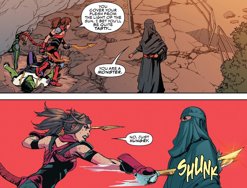 Meanwhile, the other half of the comic really worked for me, with the various Champions members scrambling to figure out what to do with this Kaldera person. Zub clearly had a ton of fun writing the wacky madness of Kaldera, as if the Champions had to somehow contain a feral cat. Zub hasn’t figured out a way to properly incorporate every single member of the rather large Champions team, but when he can get some focus going, it works really well. Dust is quite awesome in this issue and I look forward to her being a prominent character.