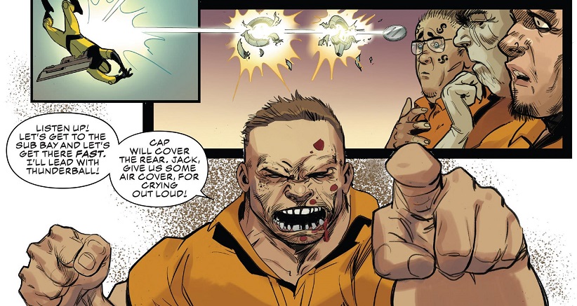 Pretty cool prison riot fight. If I can be nitpicky, I wish Coates and Kubert had picked some more interesting and/or visually cool villains to team up with Cap in his prison break riot, but it’s not that big of a deal. Coates has built up the Wrecking Crew rather well since Cap went into lockup, and all the villains are used well in this issue. I especially enjoyed the betrayal in the end, and Cap’s resignation that it was obvious. There’s also a fun moment that feels ripped straight from the first Avengers movie. Cap tries giving orders, but the villains don’t want to listen, then he pulls off some insane shield stunt and everybody is in awe. Wrecker quickly steps in and issues the same orders and everybody quickly falls in line. It was fun.