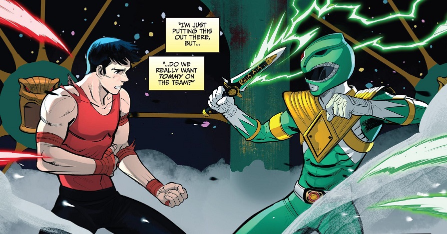 The issue opens with a scene from during the original Green Ranger Saga, with the rangers sitting around a table debating whether or not they even want Tommy to join the team, should they successfully free him from Rita. Billy suggests Jason make the call, since he’s the leader, but Jason bristles at the responsibility.