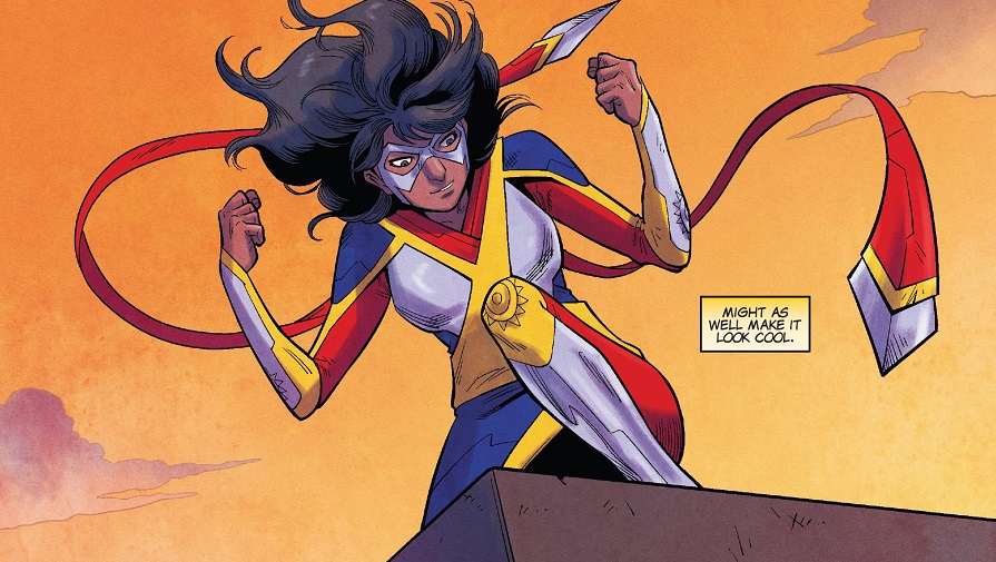 So we all just have to grin and nod our heads that there’s no easy fix for her father’s illness, delivered in what should be a touching scene between Kamala and Tony Stark — but I don’t recall any particular relationship between them. So that falls flat, especially when Tony needs a couple panels to gush at how cool Kamala’s new suit is. Ugh. Two different characters compliment the new uniform, and Tony even runs a diagnostic to tell us all about it’s cool new features! It would feel like a parody if it wasn’t so oblivious.
