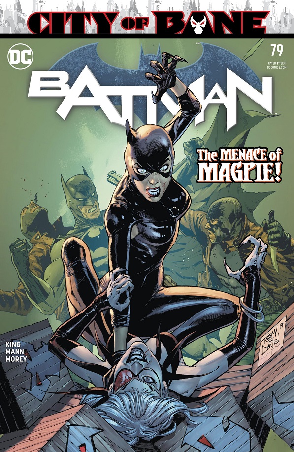 This is another issue of Bruce and Selina luxuriating on a beach somewhere, bantering flirtily back and forth. King has had an ongoing subplot/tease about whether they first met when Catwoman robbed a boat, as in their first actual in-comics meeting, or whether they first met on the street, as in Batman: Year One. The two lovebirds decide to settle the disagreement by simply starting over, saying they met on this beach and it’s all lovely. In the end, they attack a shipment of Venom run by the villain Magpie, letting the villain community know that Batman and Catwoman are back in action.