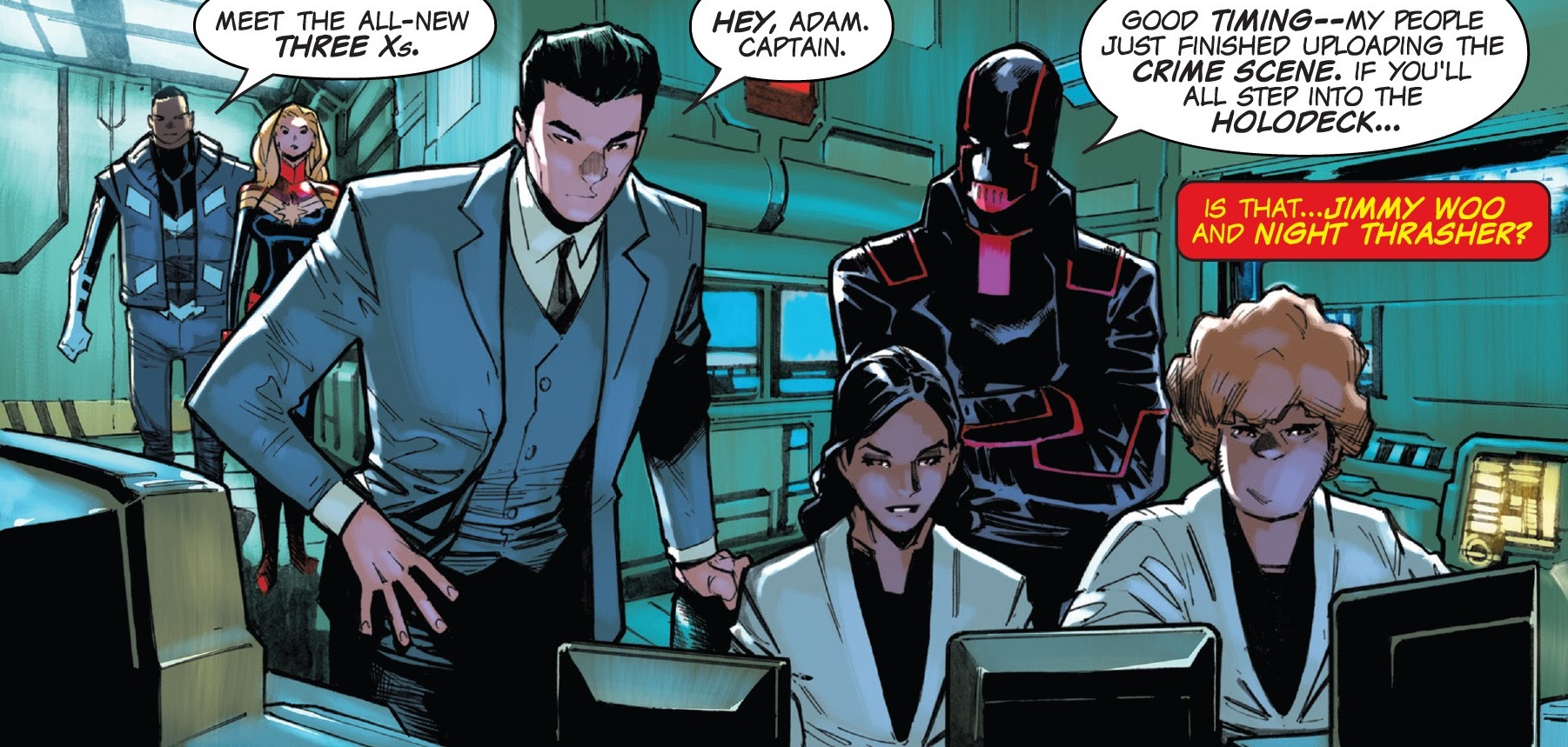 A joint Kree/Skrull empire led by Hulkling claiming his destiny in order to invade Earth sounds pretty cool. At the very least, from the preview images we saw, I was worried that Marvel was going to kill either Hulkling or Wiccan and they would be the victim in the murder mystery. I’m glad Marvel didn’t go that route. But man, they sure went a pretty extraneous route on this murder mystery. So a new character, Masked Raider, discovers the body, and he goes to great lengths to attract a nearby Daredevil’s attention to come check it out. And Daredevil decides to ask Jessica Jones to investigate because he doesn’t think the police have a chance. And then when Jessica sees one little clue, she apparently drives six hours in the middle of the night to visit Captain Marvel to run it by her. And then that snowballs to include Blue Marvel, Jimmy Woo, Night Thrasher, Arno Stark, a random check-in with the Champions, Reed Richards and more I’m forgetting, all for what seems like a pretty standard murder. Granted, it’s not a pretty standard murder in the end, but Marvel really stretched themselves thin making sure they paid a visit to all major players with big, marketable storylines coming up.