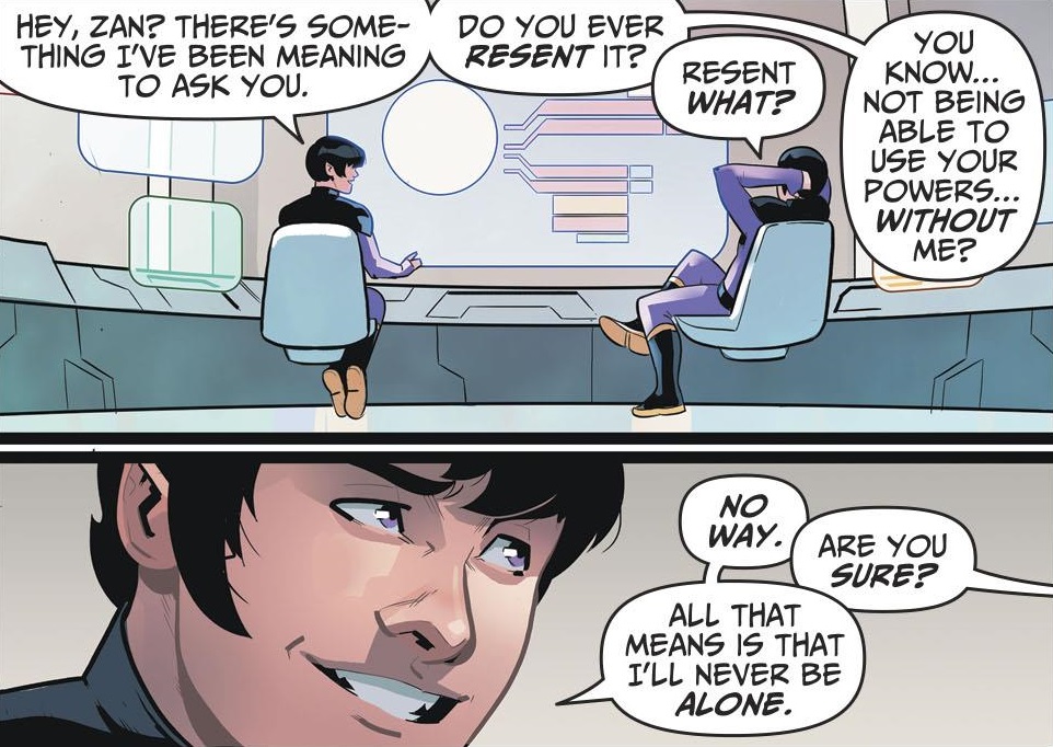 In the end, the lesson of the Wonder Twins is that you should always give optimism a try in a world that feels so cynical. That it’s in people you can put your trust. I think that’s a good message to close out on, for a series full of great messages. I think that’s what I loved most about Wonder Twins: how Russell used these characters to make larger points about larger themes. That’s what great art does. That’s what great fiction does. Anybody can write a story about Spider-Man punching Doctor Doom. But Russell wrote a story about Zan of the Wonder Twins realizing that just because a first date didn’t work out doesn’t mean he’s less of a person, or that he has to cut the other person out of his life entirely. Russell wrote a story where Jayna of the Wonder Twins was just about ready to write off the planet Earth as a cynically, corrupt place, only for her personal heroes to prove her wrong and give her something to believe in again.