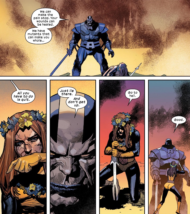 Once upon a time, the Scarlet Witch stole the power from upwards of 1 million mutants at the end of House of M. The new Krakoa Resurrection Protocols can restore those powers, but the mutant first has to die. And the Five and the Protocols simply couldn’t handle it if all 1 million mutants killed themselves at once to get resurrected. So the Quiet Council came up with the Crucible, and Melody Guthrie is first up.