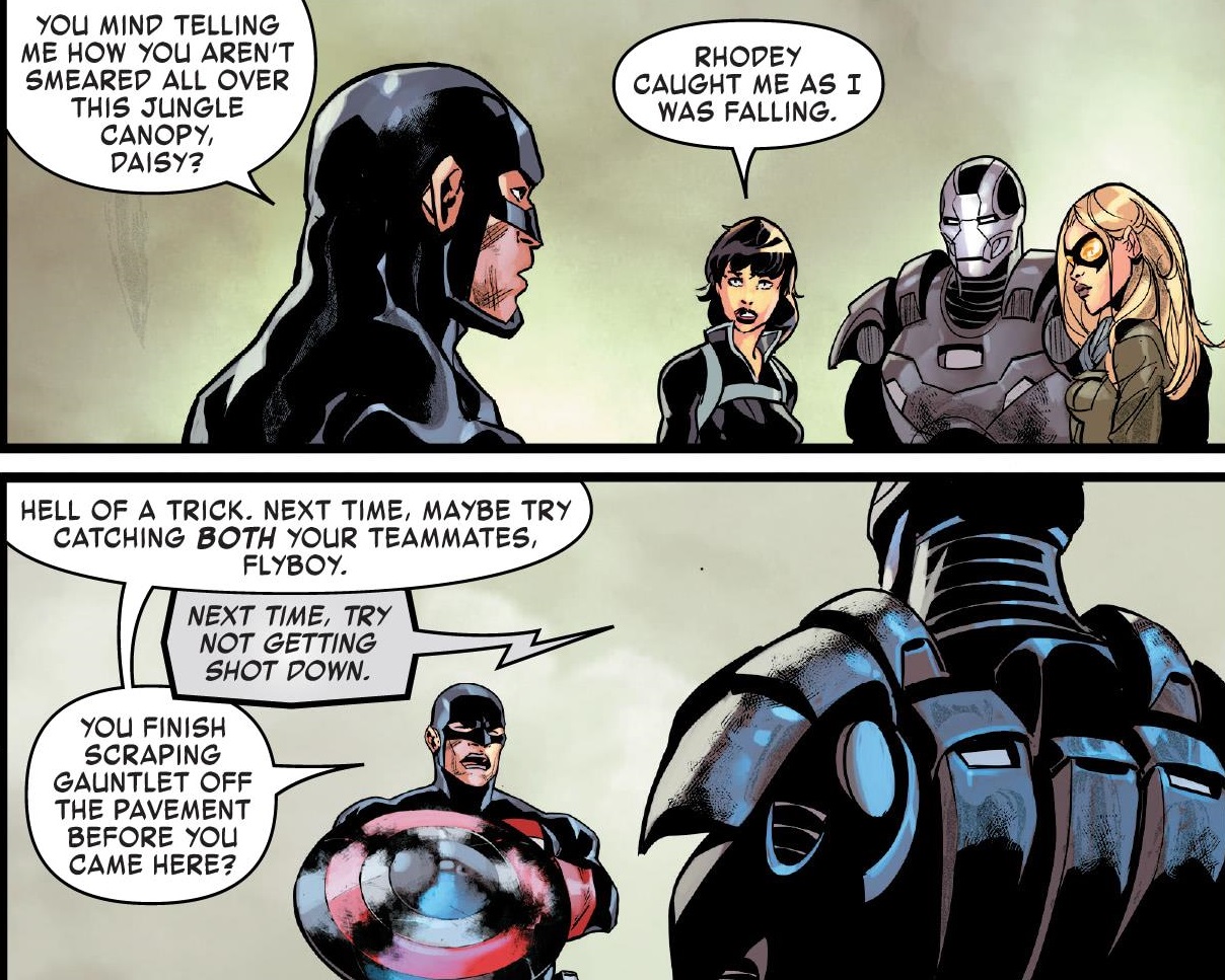 I really liked the art as well. It’s energetic and colorful, with good looks for all of the characters. The story doesn’t have very strong legs to stand on, but it works. This is what Rhodey is up to during the robot uprising, and it’s fun. He’s fighting the good fight, working with, arguably, good people. And Rosenberg keeps the energy flowing between all of them. I wouldn’t say there’s anything in particular that really stands out or makes this a must-read comic, unless you are particularly interested in the characters. I probably wouldn’t have checked this out if U.S. Agent wasn’t on the team. I don’t know what it is about that guy…