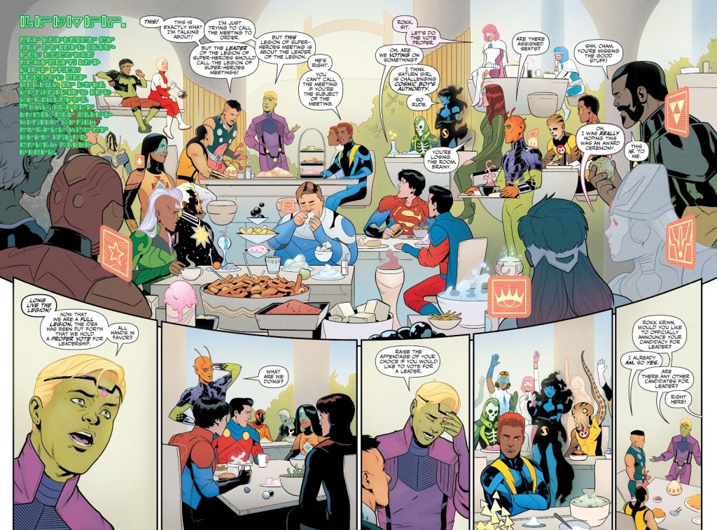 TL;DR: This issue is jam-packed with so many characters that it feels like the comic might tip over, but being a wild, over-stuffed mess of a comic is exactly what I’m loving about this Legion of Super-Heroes.