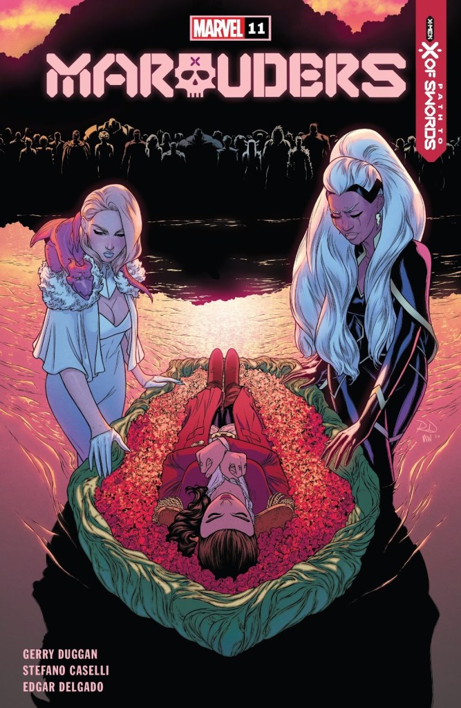 I didn’t care for the scene with Storm meeting the government woman. The prose additions to each Dawn of X comic were fun in the very beginning, but by this point, it’s obvious they’ve been stretched thin. And there’s no real bridge between the prose “X-Desk” entries and this character suddenly showing up in the actual comic, so it was jarring. It’s obviously safe to assume Duggan was building to this moment all along, but it just fell flat for me.