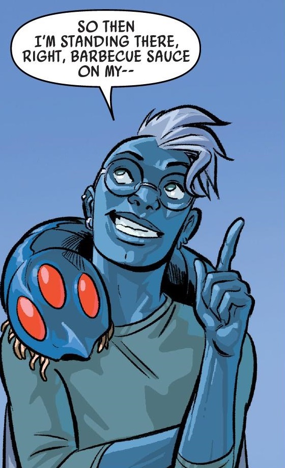 At any rate, Maggott was brought back during Necrosha years later, but he was down to just one slug. This continued for a while as Maggott made random background appearances here at there. At one point, they turned him into a hipster.