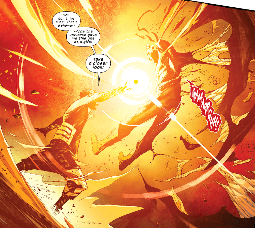During all the fighting, Frenzy manages to gain enough control to break out of her symbiote shell. She disarms Knull Cable and Manifold forces Knull out by bringing a piece of the sun into the fight. Knull is repelled, Krakoa is saved, and Magneto has some new ideas going forward.