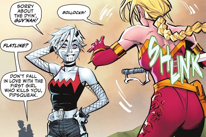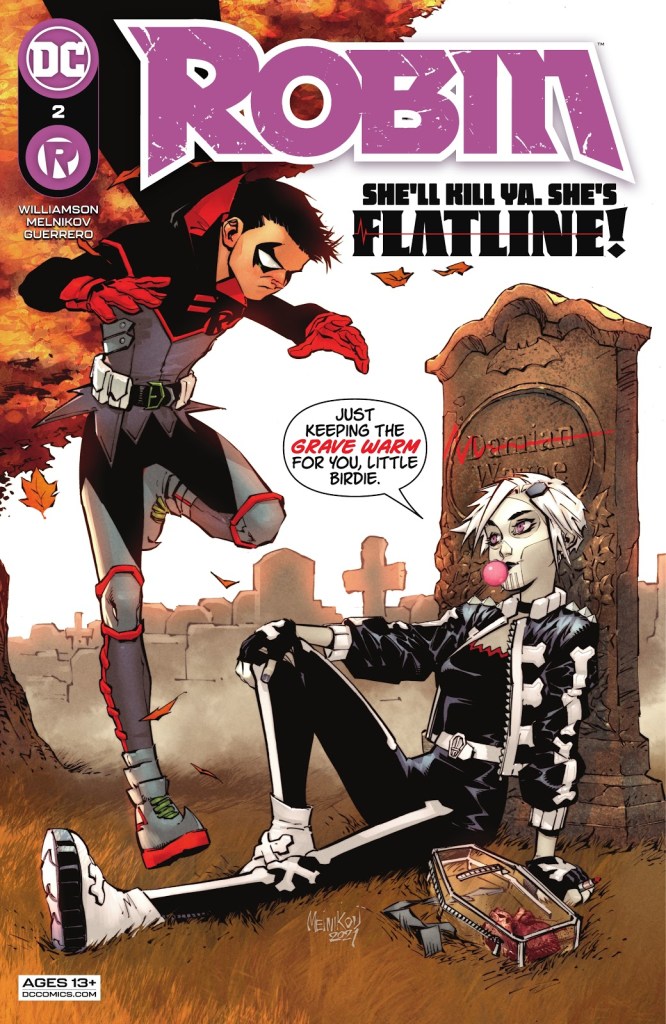 I like what I see. The set up continues in this issue, and it’s good set up. We learn the rules and get to see Damian Wayne cut loose a little, while also getting to better know both Ravager and Flatline. And I like all of that. This is a storyline-based comic, at least so far. Williamson has set up this crazy fighting tournament and he’s dropped Damian Wayne right in the middle. He’s clearly having fun with characters and set-up, and I’m enjoying that. He keeps the dialogue moving nicely, and we’ve got plenty of action and now mystery. He’s also clearly loving the hell out of Flatline, which is a hoot. She works well with Damian.