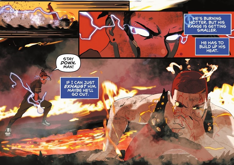 The story actually started in a special Milestone Returns one-shot a couple weeks ago, where Dakota City Police fired experimental gas on a Black Lives Matter protest and killed several people, while giving several others super-powers. This event was the “Big Bang” and these are “Bang Babies”, among which is Virgil Hawkins. In that opening chapter, Virgil used his powers to beat up his bully, Francis, who has fire powers.
