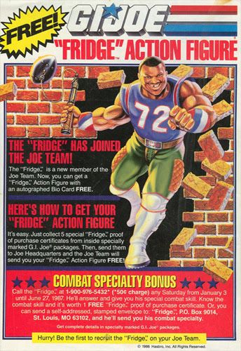 Unconventional choice, I know, but hear me out: what if one of the cinematic universe movies was just a straight biopic about a real person, and then the biopic transforms into a G.I. Joe tie-in at some point in the film? How insanely cool would that be?! William “The Refrigerator” Perry was a real football player in the NFL, helping the Chicago Bears to win their first Super Bowl in his rookie year. He was one of only a handful of real people to be drafted into the Joes. So…yeah! Make a biopic about William “The Refrigerator” Perry and then have him join the G.I. Joes at some point in the movie. It’s a brilliant idea! You can even throw in Captain Grid-Iron, the fictional G.I. Joe character who was football themed. He can be the glue that holds this madness together.